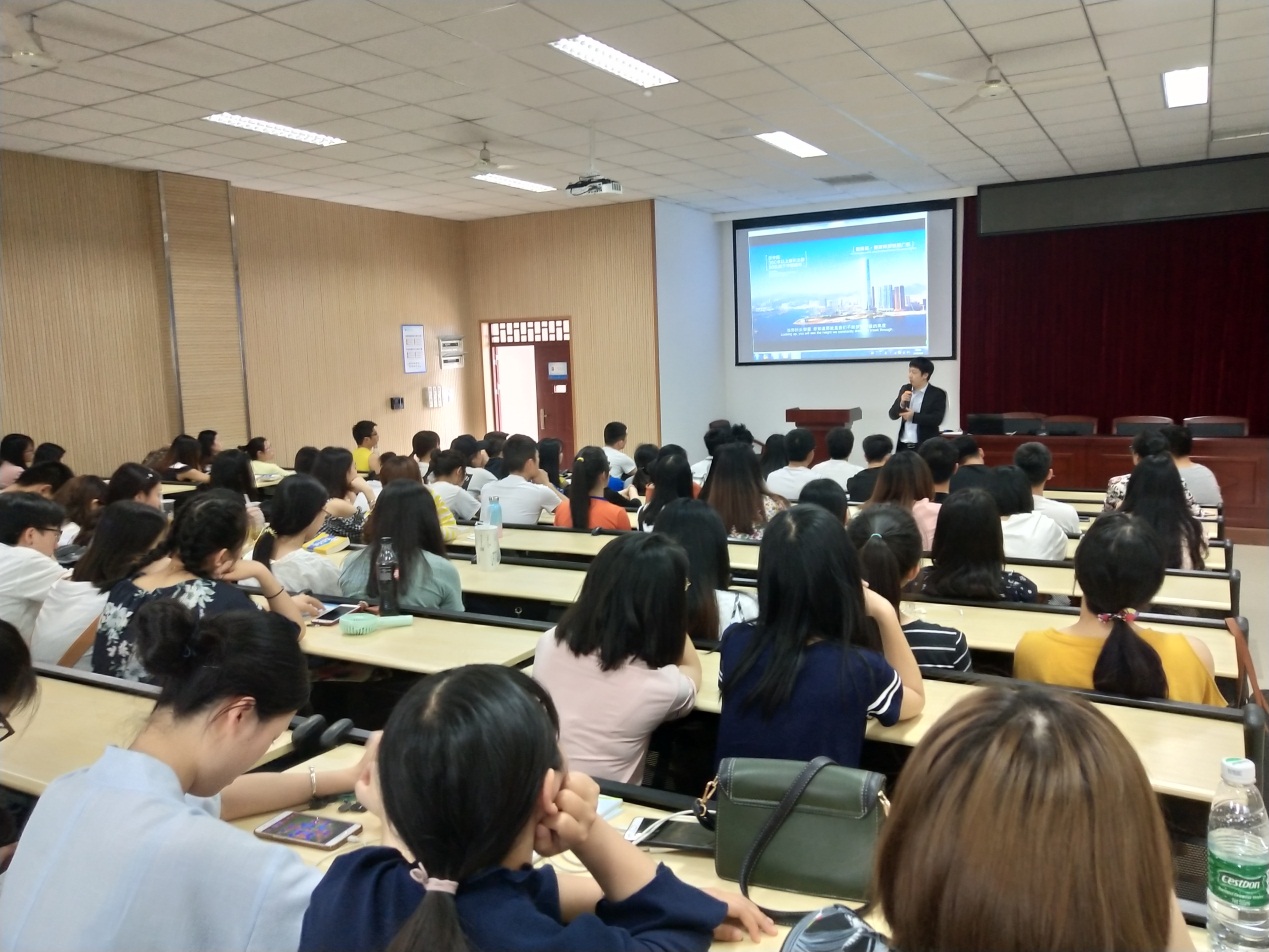 会上播放了中建八局及其旗下装饰有限公司的企业宣传片,让同学们对该企业有了初步了解,随后何主管从“企业概况、代表工程、职业发展、职业要求”四个方面来具体介绍中建八局。