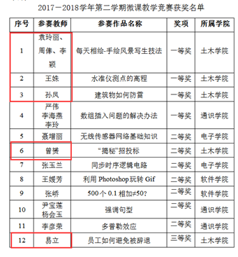 据悉,此次竞赛学校共收到推荐参赛作品50件,4项一等奖中就有3项为土木学院教师的参赛作品,这是学院重视教师教学能力提升和提倡教育教学信息化的成果。学院为教师们提供了许多信息化教学和微课教学培训的机会。