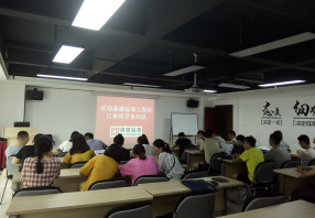 本网讯(文/图 令永强)2018年7月6日下午,土木学院校企合作“监理工程师”订单班学生在班主任令永强老师的带领下,来到重庆市南岸区弹子石国际社区商务大厦-康盛监理咨询有限公司进行暑期实习岗前培训。