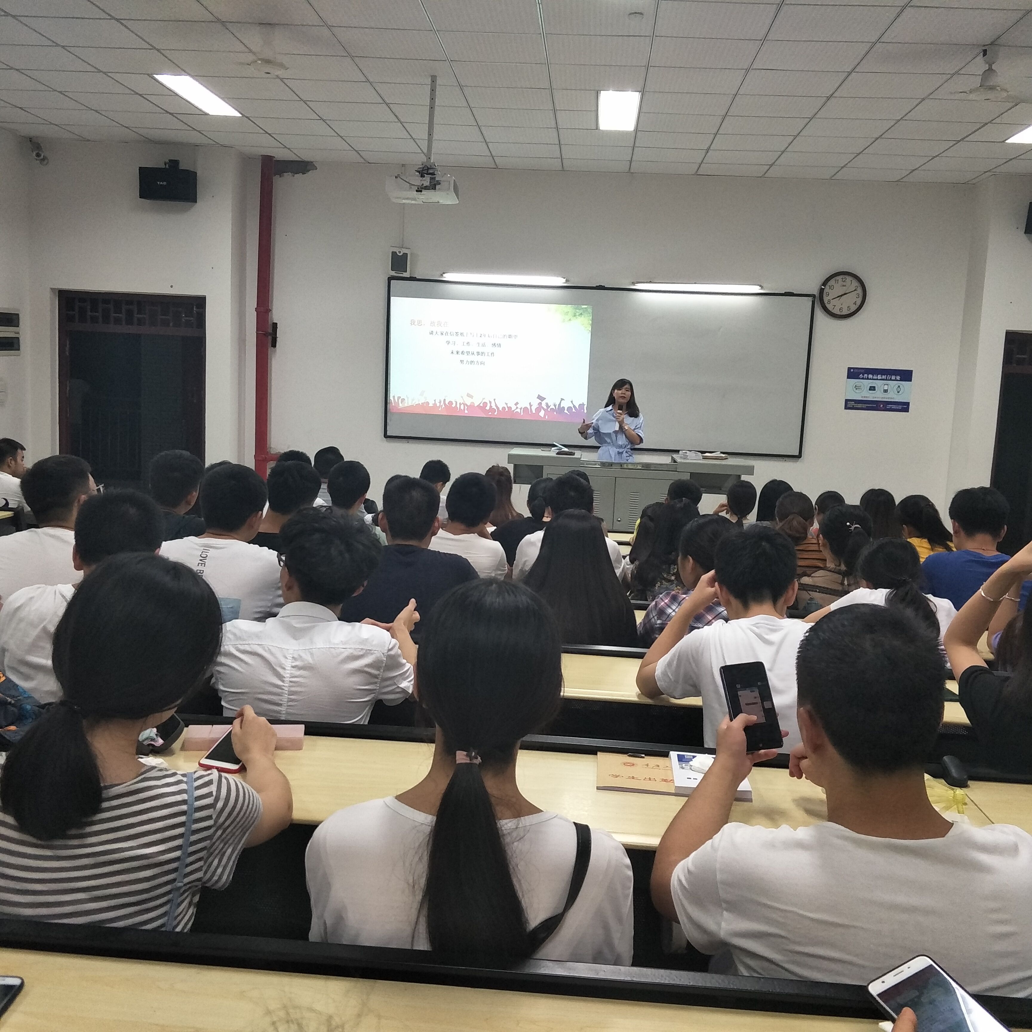 本网讯(图/文 石嘉欣)9月5日20:00,2016级工程造价1-8班于六教301教室开展新学年第一次主题班会——“给未来自己的一封信”。本次班会由辅导员向丽虹主持,200多名同学参与。
