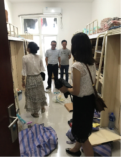 学院领导仔细察看了宿舍周边生活设施及安全事故预防和控制设备完善情况,走进学生宿舍,就宿舍卫生、住宿管理、安全隐患等问题与同学们进行交流和沟通,听取了大家对宿舍生活服务设施的意见和建议,并勉励学生勤奋学习,积极向上,养成良好的学习和生活习惯,提高安全意识,营造良好的寝室文化氛围,让同学们感受到来自学院领导和老师的关心和温暖。