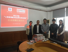本网讯(文/令永强,图/苏娜)2018年10月12日下午,土木学院与重庆康盛监理咨询有限公司共建“工程管理服务创业孵化育成基地”,公司副总经理王子龙、人事处经理周扬贵亲自到校捐赠了靠尺、游标卡尺、激光测距仪等仪器设备。学院执行院长雷江、党总支书记杨晓玉、实习实训中心主任朱曲平、康盛监理工程师订单班班主任令永强参加了座谈。