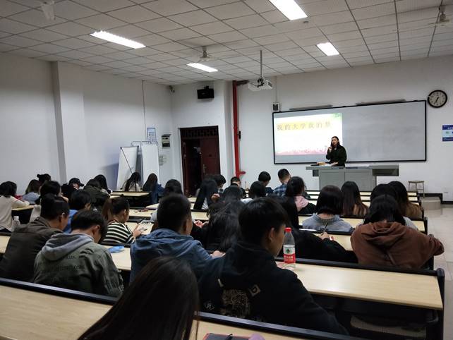 首先,易老师用两个“为什么”向同学们提问,你为什么来读大学?你读大学是为了什么?引起了同学们的思考和讨论,各班代表纷纷发言,谈了自己对于大学与梦想的理解。随之易老师解释道:人生只有一个大学阶段,有些学生带着梦想而来,每天过得充实快乐,为离梦想进一步而倍感欣慰;而有些同学终日浑浑噩噩、碌碌无为,每天过得百无聊赖,终日不知为什么而努力。我们要确定好目标,并且为实现自己的目标而坚持努力,利用大学这段宝贵的时间,丰富阅历,增长见识,为早日实现梦想而做好准备。