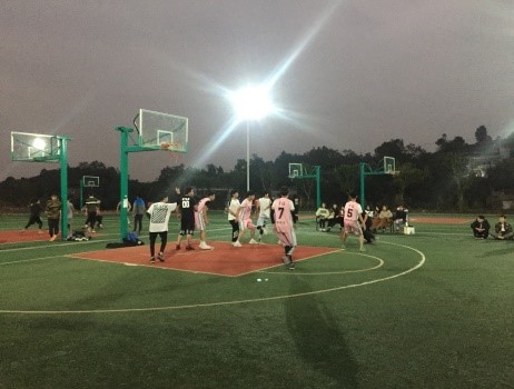 伴随着裁判哨声的响起,整个球场充满了紧张的气氛,球员的激情全都淋漓尽致的展现在了此刻的篮球场上。每一位队员都全力以赴,用心防守、有力阻挡,越战越勇,即使汗水早已浸湿了他们的衣衫,也难挡他们散发的热情。在场的啦啦队们也不甘落后,一直为场上健儿呐喊助威,现场的气氛浓烈,吸引着外场人员驻足观赛。