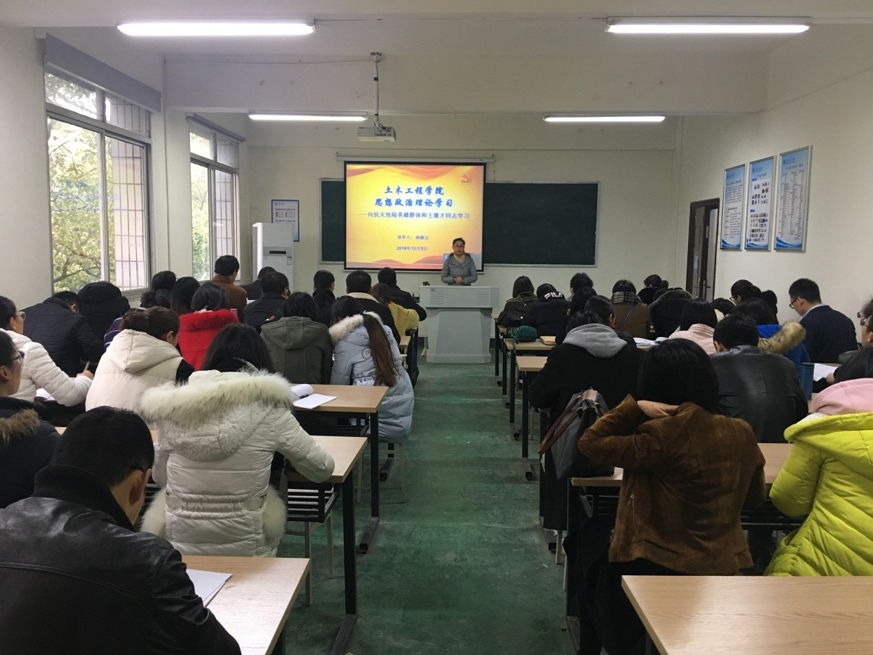 本网讯(图/文 崔雅斐)2018年12月5日,土木学院党总支于第一教学楼305教室开展思想政治理论学习——向抗灾抢险英雄群体和王继才同志学习,领讲人为学院党总支书记杨晓玉。