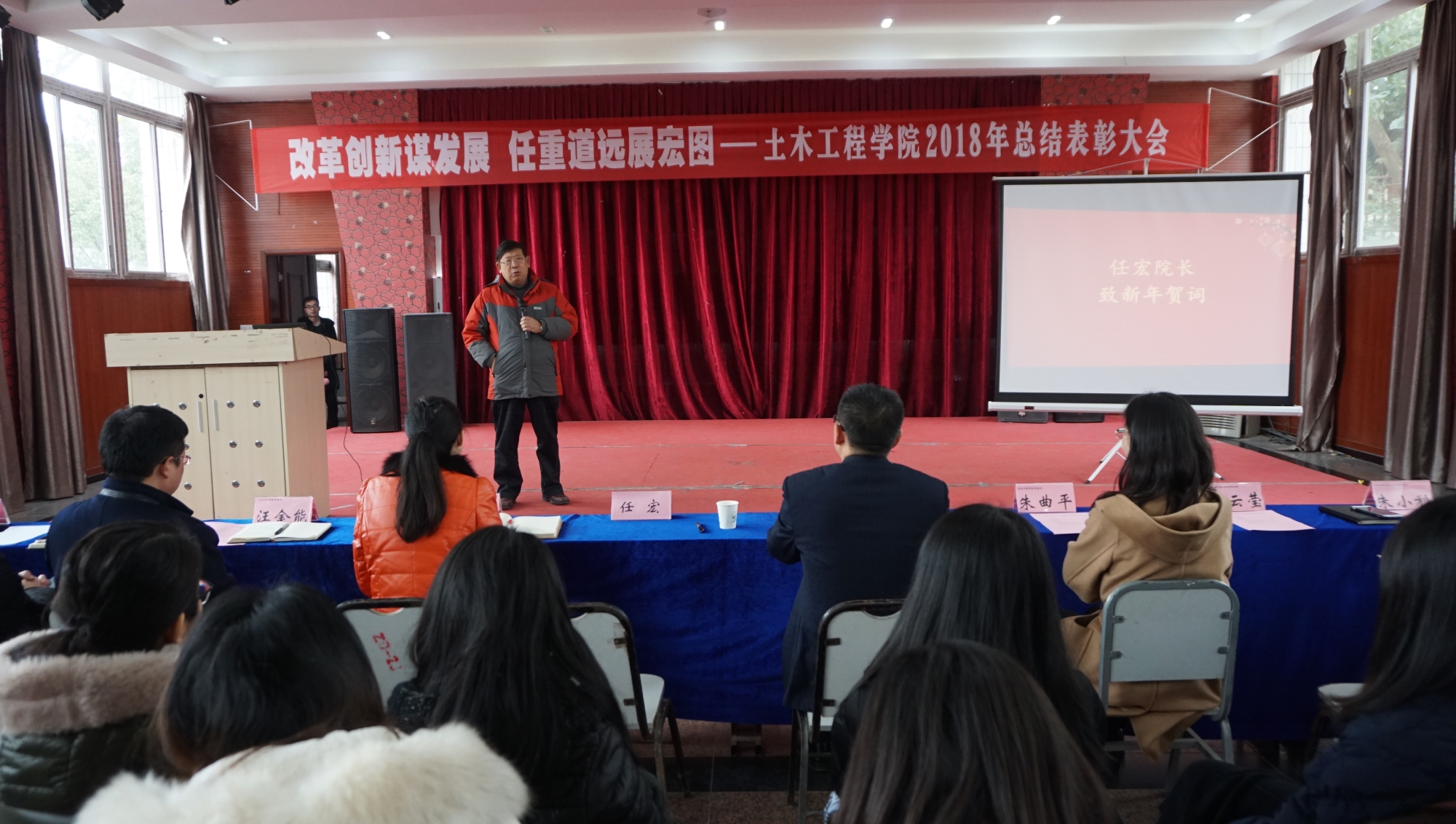 本网讯(文/图 毛云莹) 2019年1月18日上午,土木学院在学院办公楼三楼多功能厅召开了2018年度总结表彰大会。