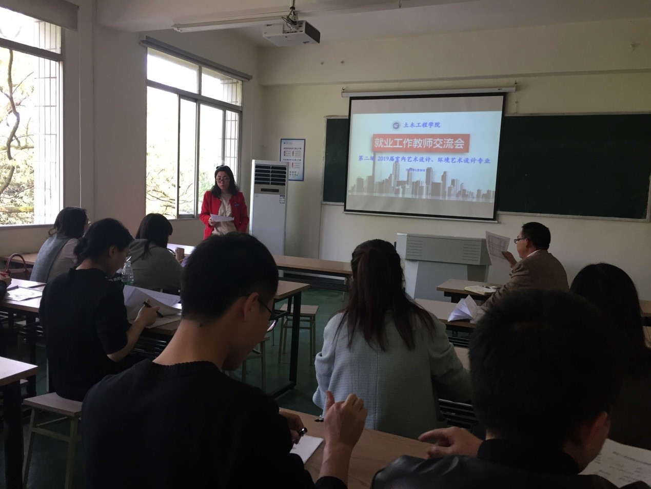 本网讯(文/图 肖思)为了进一步帮助2019届毕业生就业,2019年3月20日下午,土木学院在1教305室开展了两场就业工作交流座谈会。会议由学院党总支书记杨晓玉主持,院长雷江,副院长汪金能、朱曲平,各系部主任、毕业班实习指导老师、毕业班辅导员参加了会议。