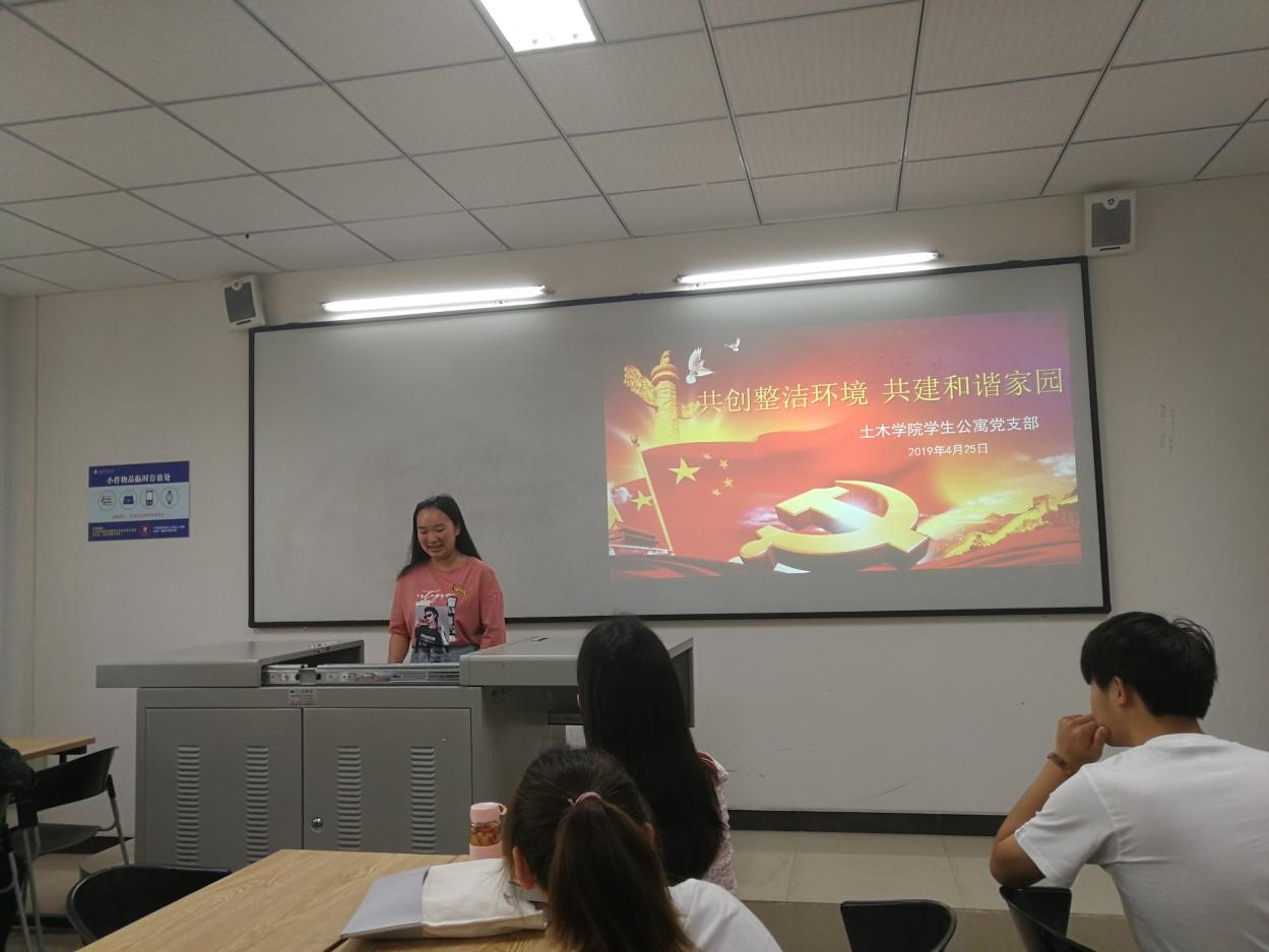 本网讯(图/文 卢尤贵)为深入学习贯彻党的十九大精神,进一步发挥学生党员在公寓阵地的先锋模范带头作用。土木工程学院1705001-1795007班于2019年4月26日早上7:20-7:40在第六教学楼开展了“共创整洁环境、共建和谐家园”主题党日宣讲活动。活动由曾俊森等7名预备党员同志参加,此次宣讲活动得到了同学们的热烈欢迎。