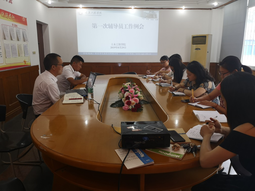 本网讯(文/图 易倩文)2019年8月30日下午3点,土木学院于212会议室召开了2019-2020学年第一学期首次辅导员工作例会,党总支书记李龙和全体辅导员参加会议,本次会议由学生办公室主任管涛主持。