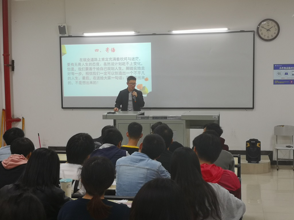 班会伊始,易老师为同学们解读了开展本次活动的意义,提醒同学们要认真的听取学长学姐的求职经验与总结,为自己以后的就业之路找好方向。稍后,刘永刚学长、周代玖学长、石嘉欣学姐上台依次分享了自己是如何拿到水利十局、水利四局和新疆建工这些世界500强好单位的offer的经历以及自己在求职过程中的心路历程,让同学们知道了找到一份好工作的不易。只有不断的提升自己,要么在学业上出彩获得各种专业技能大赛的奖项,要么就积极的考取专业证书证明自己,最关键的是要做好就业准备,看准时机,抓住机遇。石嘉欣学姐更是总结出了“面试三要”“面试四不要”,教导我们要认清自己的方向并为之努力。青春是用来奋斗的,奋斗的青春最美丽!