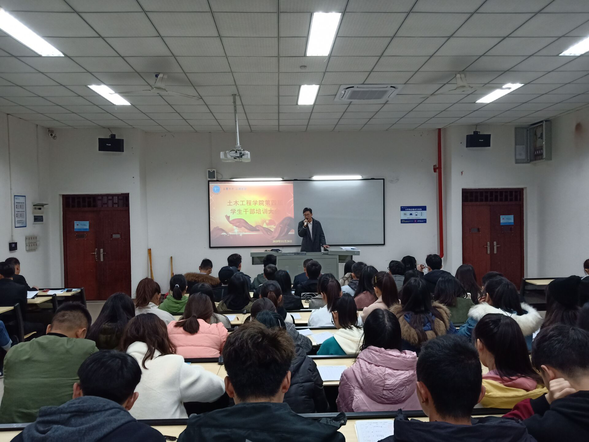本网讯(文/王梅 图/谭涣千)为了强化学生干部的责任意识,提升服务水平,增强管理与自我管理能力,土木工程学院于2019年11月20日18:30在第六教学楼202开展了土木工程学院第四届学生干部培训第二次大会。
