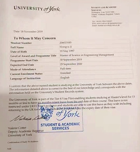编者按:很多学生对自己的未来充满了迷茫,到底是考研还是就业?我们今天的主角季泓宇会和我们一起分享她的故事。她作为土木工程学院2019届工程造价毕业生中的一员,没有和同级的人一样去就业或者考研,她选择了另外一条路,那就是留学。现在她攻读于英国约克大学硕士研究生,工程管理专业。