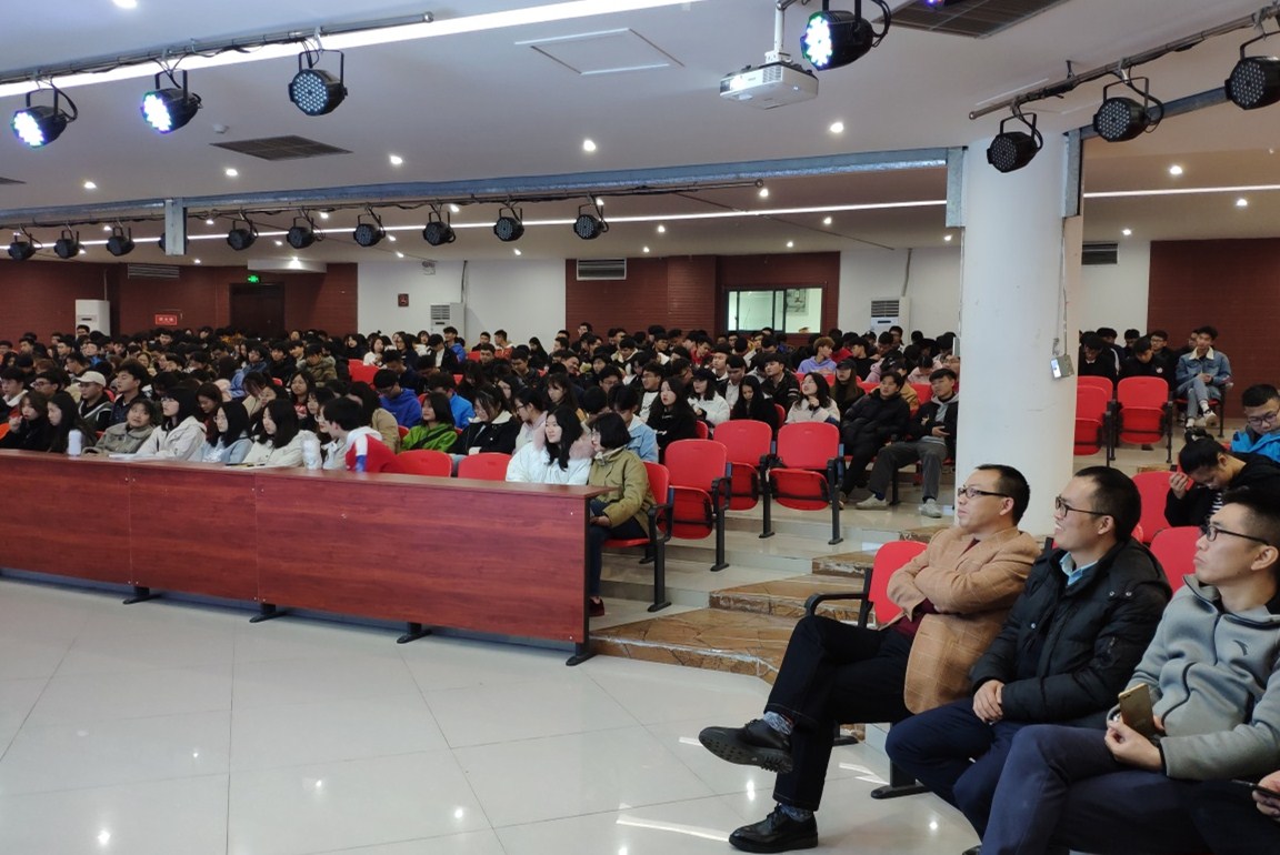 本网讯(文/图 涂异)12月10日晚,土木工程学院雷江院长带队,李龙书记、汪金能副院长、系主任代表、优秀学生代表等一行8人来到双桥校区,为2019级大一新生带来了主题为“学长学姐带你学专业”的专业讲座。