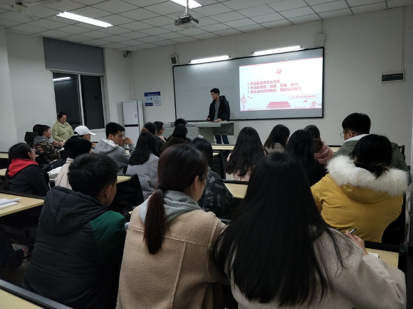 晚7点,大家准时到达教室,安静专注的观看《新闻联播》直播,学习最新的时事政治。随后开展征文研讨会,会议由卢尤贵同志主持,主要围绕“学生党员如何发挥模仿带头作用”、“学生党员如何在班级、寝室、学习等方面做好表率”、“如何深入学习党的理论知识”三个方面展开讨论。其中,张梦月同志强调要起到积极模范带头作用,就要积极参加活动,主动学习理论知识,认真利用“学习强国”APP了解最新党建知识,从身边小事做起,做一名有责任感的当代学生党员。