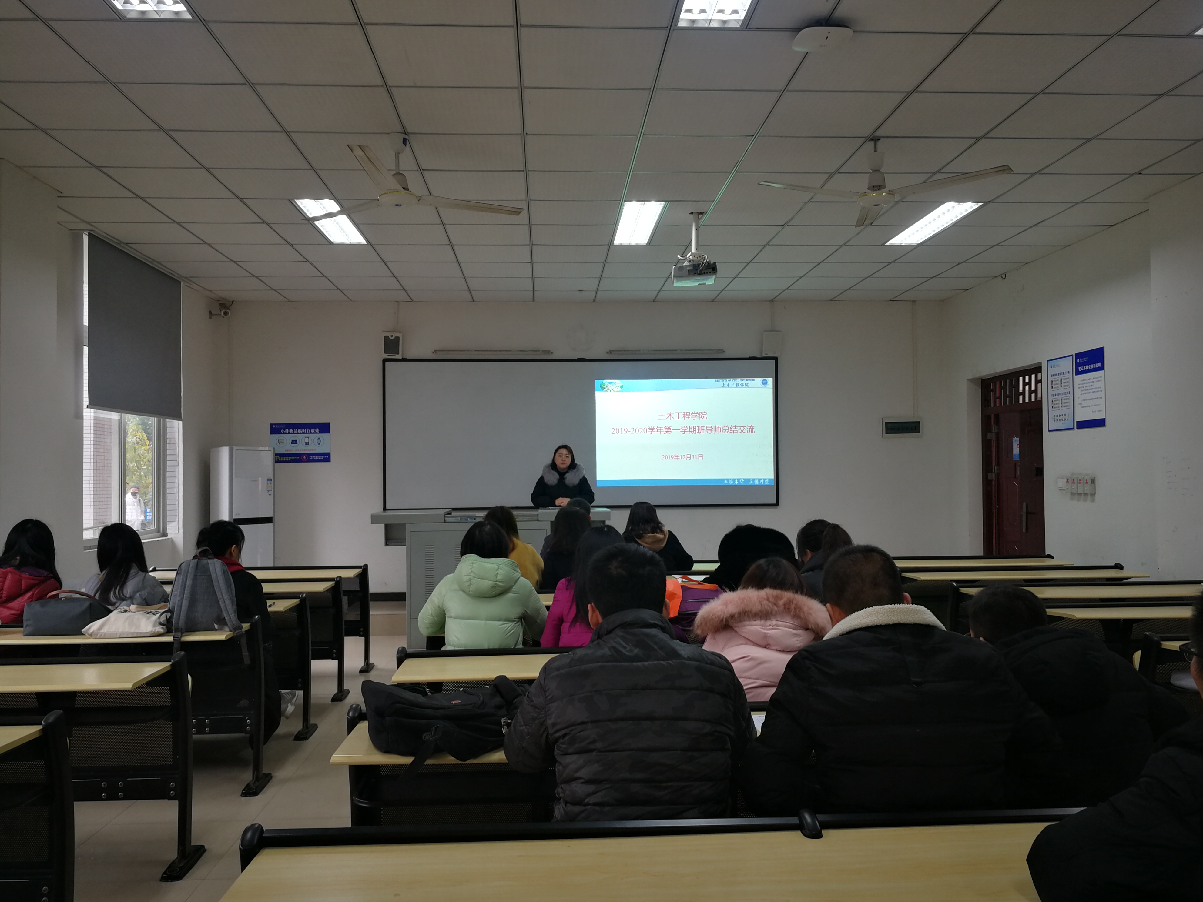本网讯(文/图 学生工作室)2019年12月31日下午2点,土木工程学院在六教115教室顺利举行2019-2020学年第一学期专业班导师工作总结交流会,学院雷江院长、朱曲平副院长及各系主任、办公室主任、全体专业班导师参加本次会议,会议由学院党总支李龙书记主持。