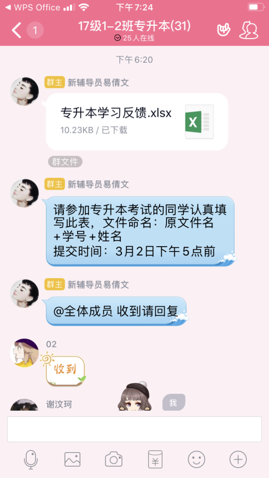 本网讯(图/文 林丽)在这个“众志成城,共同抗疫”的特殊时期,为了了解专升本同学的备考情况,为同学们树立备考信心。土木工程学院辅导员易倩文老师于2020年3月1日17:30在17级室内艺术专业1-2班专升本QQ群里开展了“戒骄戒躁,我们应该这样备考”的线上专升本学习交流会。17级室内艺术设计专业1-2班全体升本同学参会。