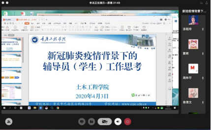 本网讯(文/图 易倩文)在新冠肺炎抗疫获得初步成效阶段,为了更好地为复学做准备,更高效地开展疫情下的学生管理工作,4月3日下午2点30分,土木工程学院学生工作室通过企业微信平台召开新冠肺炎背景下的辅导员工作思考交流会,此次会议由学院党总支书记李龙主持,全体辅导员参会。