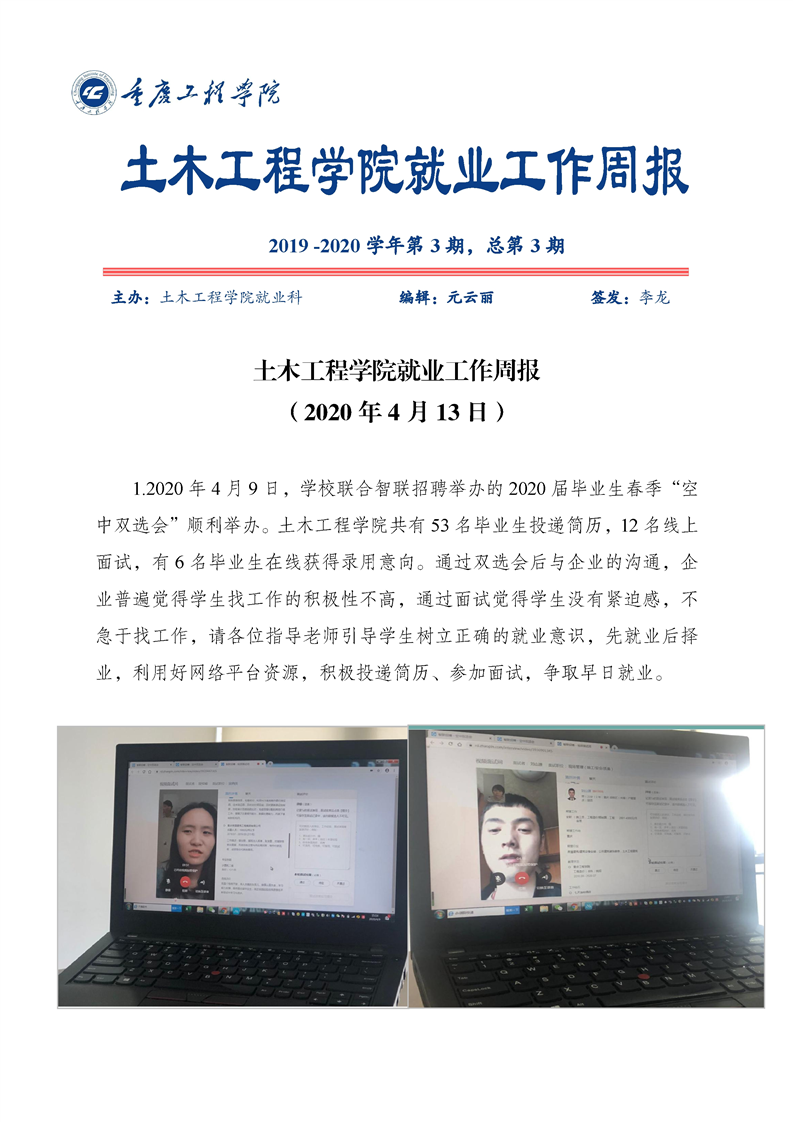 【就业周报】土木工程学院2020年就业周报第3期
