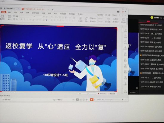 本网讯(文/图 廖宇琦)2020年5月18日16:40-17:20,18级环境设计专业召开了一场主题为——返校复学,从“心”适应,全力以“复”的网络云班会。