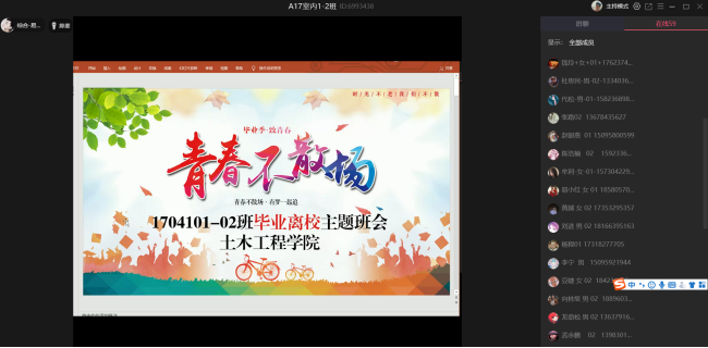 本网讯(文/图 林丽)为了落实毕业生工作,具体讲解毕业流程。2020年6月27日晚上7点,辅导员易倩文在在QQ群里开展了“青春不散场”线上主题班会活动。