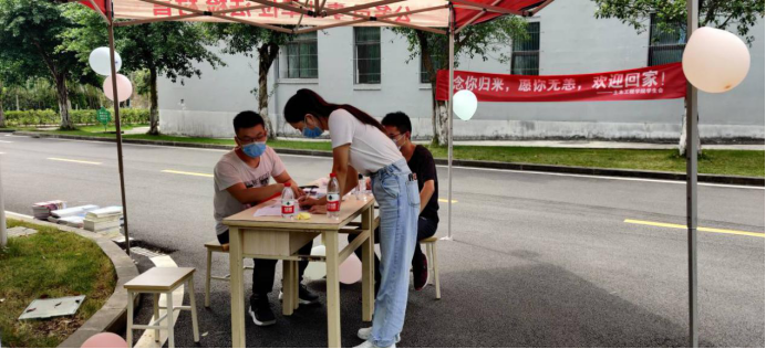共同构筑防疫安全屏障,守护师生健康,奠定坚实的基础,由我院18、19级学生组成的返校工作志愿者在容园2号、和园3号及园5号学生宿舍楼大门处设置志愿者服务站进行量体温、信息登记、收健康承诺书等工作,同时为返校的同学们提供便利服务。