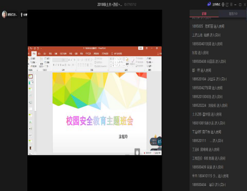 本网讯(文/图 唐仕林)2020年9月13日20:00-20:50,18级土木工程专业召开了一场主题为“校园安全主题教育班会”的网络云班会。