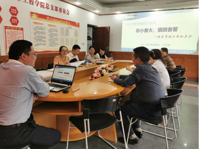 (图/文 蒋怡非) 2020年9月16日下午,土木工程学院在212会议室开展了2020年秋季新进员工培训会,本次培训会由学院院长雷江和副院长汪金能主讲,全体新进员工参加了培训。