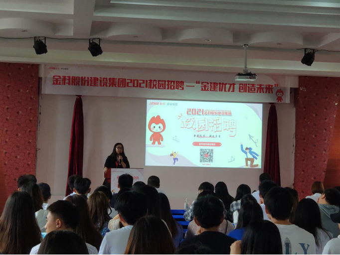 招聘会上,招聘单位通过播放宣传片,PPT展示,面对面交流的方式向同学们介绍金科集团的公司概况,金科集团是中国民营企业500强,重庆企业100强榜首,中国房地产品牌价值Top10第三名。宣讲会上,金科建设集团旗下五个领导分别从御临建筑、骐鼎建设、园林公司、源昊装饰、金科航星五个方面对其介绍。并提出金科的双赢计划:同创共赢+同舟共赢,让金科继续向更好的方向发展。提出他们对所招人员的要求:高素质、高能力、金科气质。最后讲出对招聘的流程。