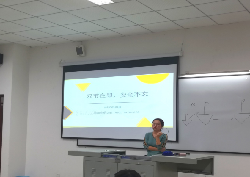 本网讯(文/图 霍柯琳)双节在即,为让同学们更清楚地了解学校放假安排以及增强自身出行的安全意识,1895001—4班辅导员周林平于2020年9月28日18:00在第六教学楼304教室召开了主题为“双节在即,安全不忘”主题班会。