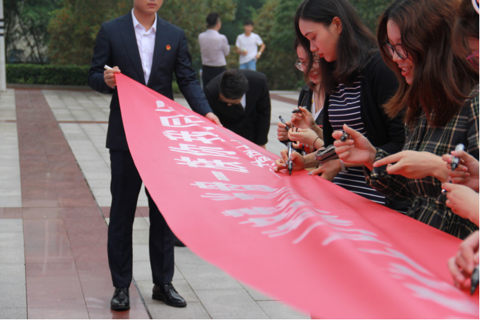 本网讯(文/刘琳靖 图/何文凯 李俊男)为深入学习贯彻习近平总书记重要指示精神,把勤俭节约、艰苦奋斗的理念内化于心、外化于行,着重培养我院全体师生的勤俭节约习惯,土木工程学院团委学生会于9月21日13时,在南泉校区和园5号广场开展土木工程学院“光盘行动”系列活动的启动仪式。出席本次活动的有:校长助理王建东、学生工作部部长黄燕、土木工程学院院长雷江、校团委书记黄涛。土木学院全体辅导员教师、学院学生会全体成员及各班级学生代表,共计200余人参加启动仪式。