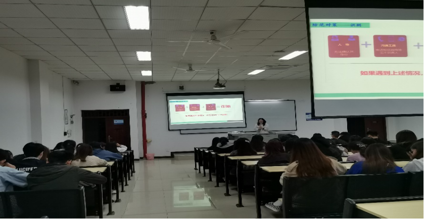 班会伊始,辅导员周代聪通过一个因还网贷而盗取电脑的团队做案的例子引出了本次班会的主题,细致讲解了校园贷的定义和危害,引起了大家警惕,并对网贷的危害有进一步的了解。接下来,周老师又分析了电信诈骗的定义和几种常见的诈骗手段,如刷单诈骗、冒充机关进行诈骗等等。通过一些实例,让大家了解诈骗的多种方式,提高防范意识,降低被骗几率,同时也再次提醒大家不要超前消费,更要远离赌博,与网贷保持距离。