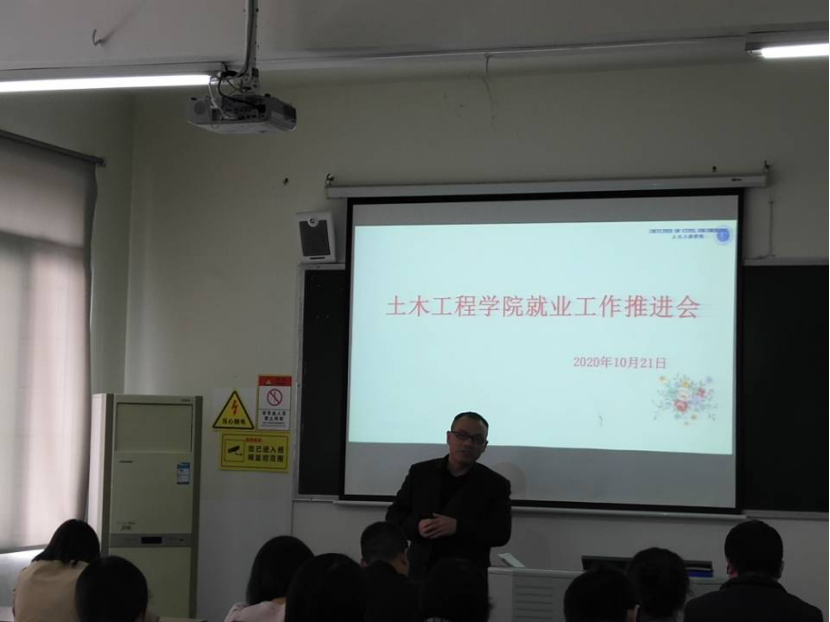 本网讯(文/图 元云丽)为了更好地做好就业指导工作,帮助2021届毕业生实现更充分更高质量的就业,2020年10月21日下午13:00在1301教室召开2021届毕业生就业工作第一次推进会。本次推进会由学院党总支书记李军主持,土木工程学院全体教职工参加了本次会议。