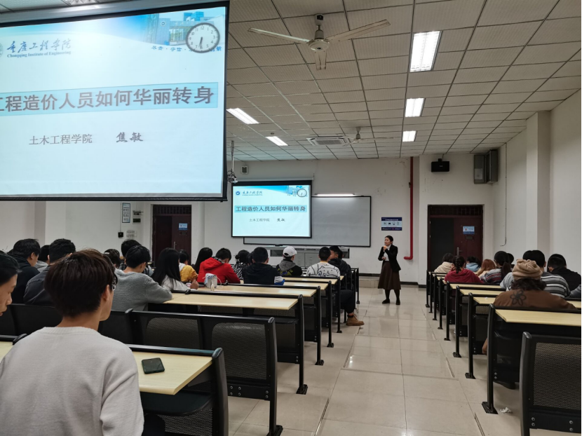本网讯(文/图 田佳佳)2020年10月28日18点30,土木工程学院在6教204教室开展了“工程造价人员如何华丽转身”就业指导专题讲座。主讲嘉宾是来自土木工程学院的焦敏老师,土木工程学院2018级工程造价专业全体学生参与此次讲座。