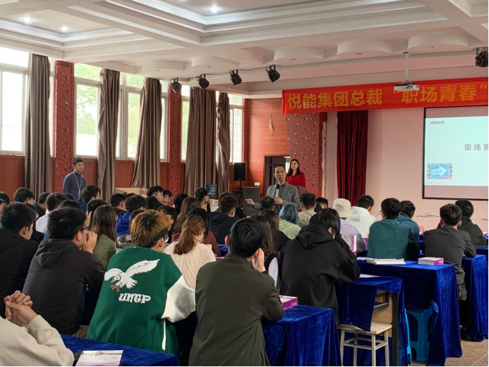 下午4点,讲座顺利结束。出席本次活动的有悦能集团总裁周奕先、主持人易倩文老师以及150余名学生。