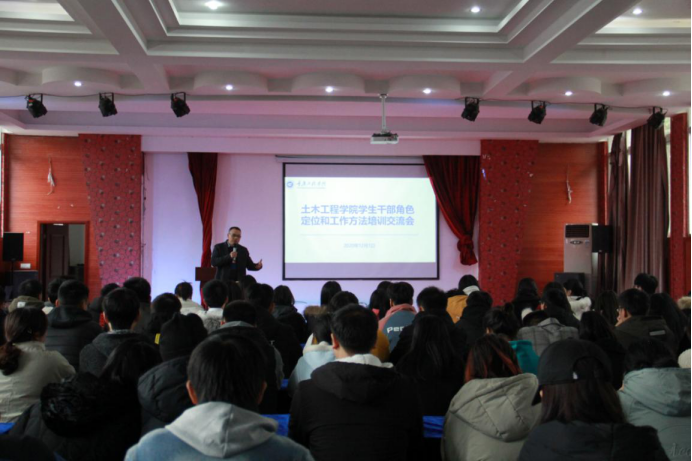 本网讯(文/肖海清 图/李俊男 何文楷)为进一步提高我院学生干部的综合素质、树立远大理想、增强自我教育、自我管理、自我服务的意识,土木工程学院团委学生会于2020年12月1日下午13:00~13:30在土木办公楼演艺厅开展“土木工程学院学生干部角色定位和工作方法培训交流会”。