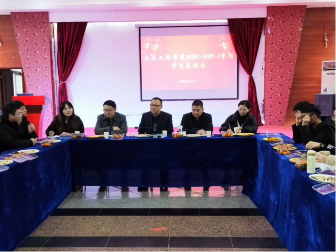 本网讯(文/刘益明 图/肖海清)为倾听同学心声,了解同学们对我院教育教学、学生工作、学校后勤工作的意见和建议,更好地推动学校及学院发展,促进学生成长成才。于12月9日下午17点在土木办公楼三楼演艺厅,召开了土木工程学院2020-2021上学期学生代表座谈会。我院院长雷江、党总支副书记唐和平、副院长朱曲平、汪金能与各年级、各学生组织代表亲切交谈。