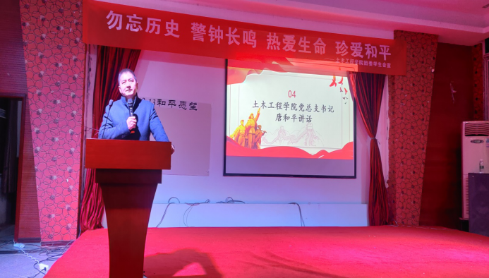 本网讯(文/刘益明 图/肖海清)为悼念南京大屠杀遇难同胞,牢记侵略战争给中国人民造成的深重灾难,土木工程学院团委学生会于2020年12月13日晚上7:00,在土木办公楼三楼演艺厅开展了“勿忘历史,警钟长鸣,热爱生命,珍爱和平”纪念南京大屠杀公祭活动。