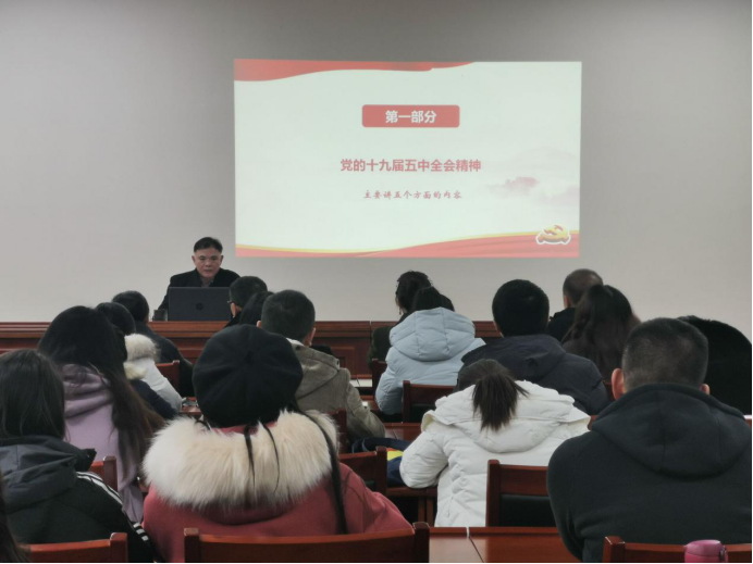 宣讲会上,桂校长重点对习近平总书记在党的十九届五中全会上所作的重要报告、重要说明、重要讲话精神和全会审议通过的《中共中央关于制定国民经济和社会发展第十四个五年规划和二〇三五年远景目标的建议》,以深刻的理论、实际的案例对十九届五中全会精神进行了深刻阐释和全面解读。进一步加深了与会人员对十九届五中全会精神的学习和理解。