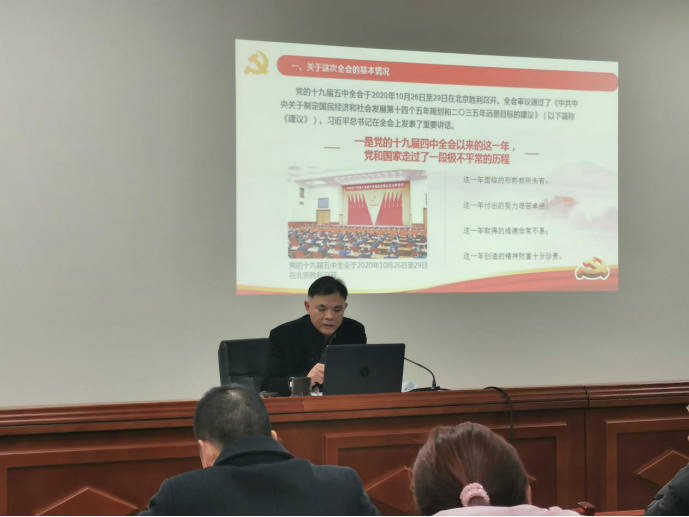 宣讲会上,桂校长紧紧围绕习近平总书记在党的十九届五中全会上所作的重要报告、重要说明、重要讲话精神和全会审议通过的《中共中央关于制定国民经济和社会发展第十四个五年规划和二〇三五年远景目标的建议》,以深刻的理论、实际的案例对十九届五中全会精神进行了深刻阐释和全面解读。