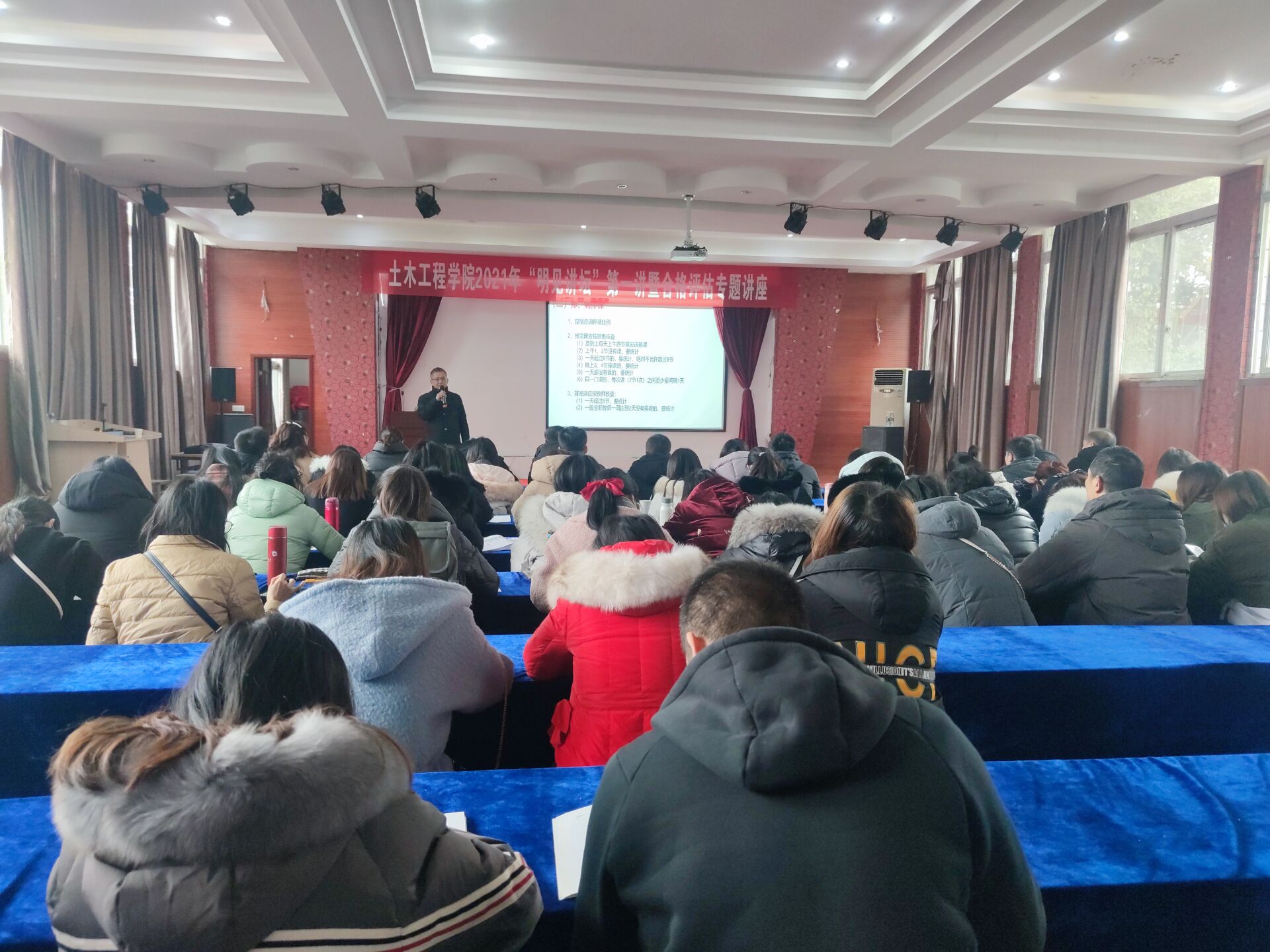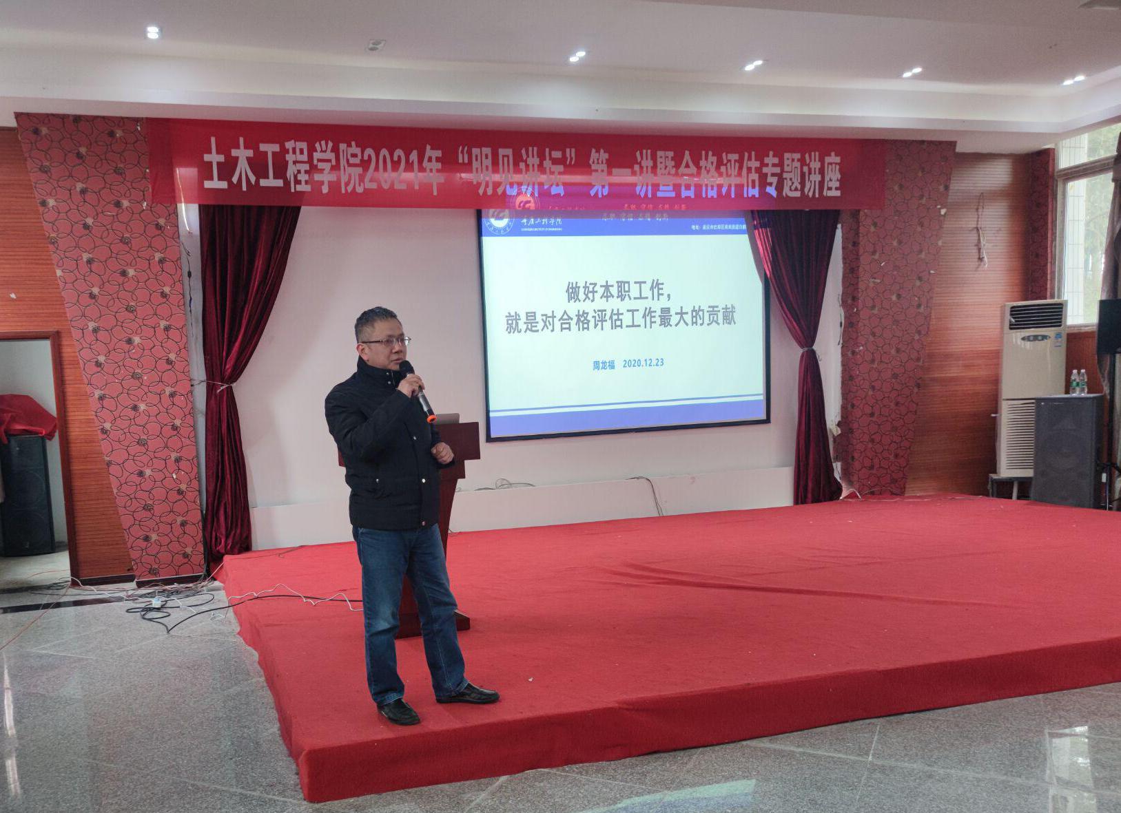 本网讯(文/宁俊龙 /图赵长成)新年度、新气象、新作为,2021年1月8日,土木工程学院2021年“明见讲坛”第一讲在学院三楼多功能厅举办,本次讲座主讲嘉宾为学校校长助理周龙福教授。