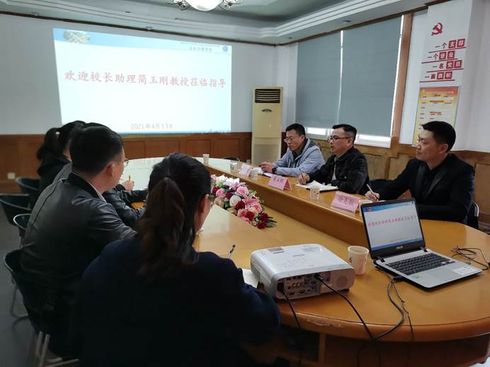 本网讯(文/图 朱曲平)4月13日,校长助理简玉刚教授带校企合作办公室副主任徐先航、干事宁俊龙等一行到我院,就教师项目工作室建设运营有关事项进行沟通指导。学院院长雷江教授、分管副院长朱曲平及项目工作室负责人涂异老师、易立老师、蒋勇老师等参加了本次会议,会议在土木学院办公楼212会议室举行。