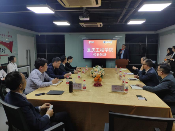 本网讯(文/图 朱曲平)4月22日下午,重庆工程学院与重庆悦能建筑工程有限公司(下称悦能建筑公司)校企合作签约仪式在企业举行。校长桂国庆、校长助理简玉刚、土木学院院长雷江、副院长朱曲平、土木系主任朱小利及悦能建筑总裁周奕先、副总裁兼重庆分公司总经理黎显华、副总裁李小东、总裁助理周学宇、人力行政中心副部长刘翼等领导出席了仪式。