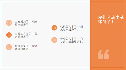 易老师以目前大学生就业以及职场现状为开端,围绕“职业心态的各种问题、心态决定人生成败、心态调整技巧、工作责任心”4个方面为大家分析和讲解了如何在职场中应该持有正确心态,她告诉同学们工作是为了更好的生活,要学会平衡工作和生活的关系,学会调节职场工作带来的压力、焦虑。她还给同学们分享了心态调整的小技巧以及如何在职场中塑造责任心。最后,易老师告诫大家保持良好的心态,才是美丽人生的前提。