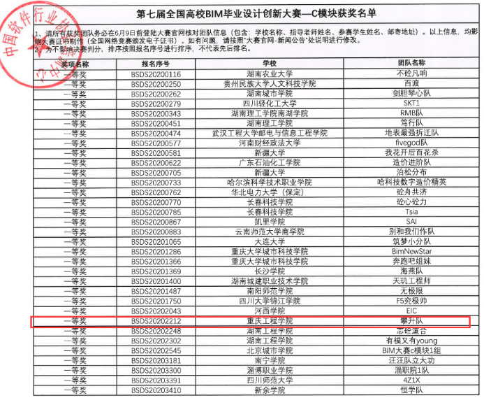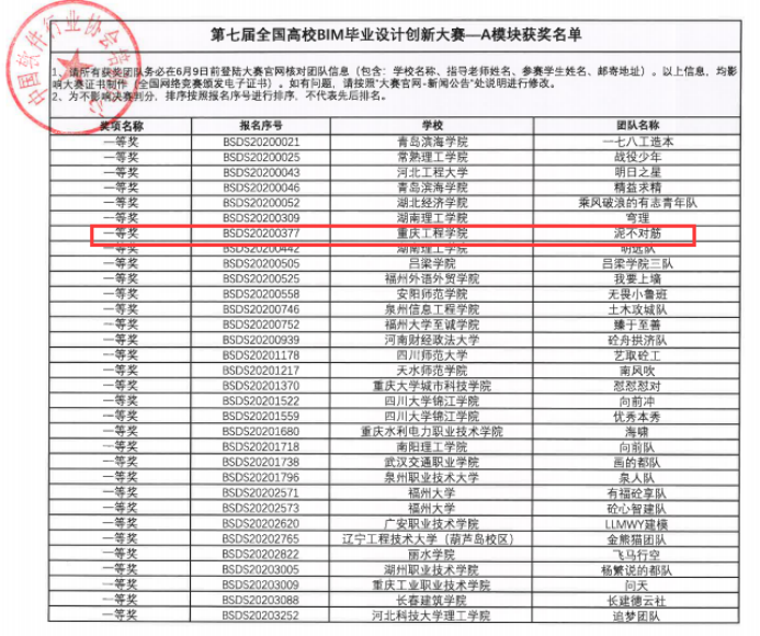 本网讯(图/文 曾赟/朱曲平)2021年6月4日,历时7个月的第七届全国高校BIM毕业设计大赛落下帷幕,由土木工程学院张维维、刘洲、张鹰、张依格、王刚、刘泽星等50多名学生组成的11支团队在全国近2000支队伍中崭露头角,其中9支团队共获得全国一等奖2项、二等奖1项、三等奖5项、优秀奖1项。