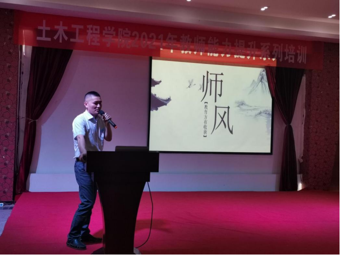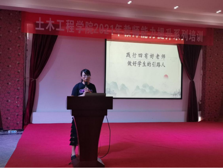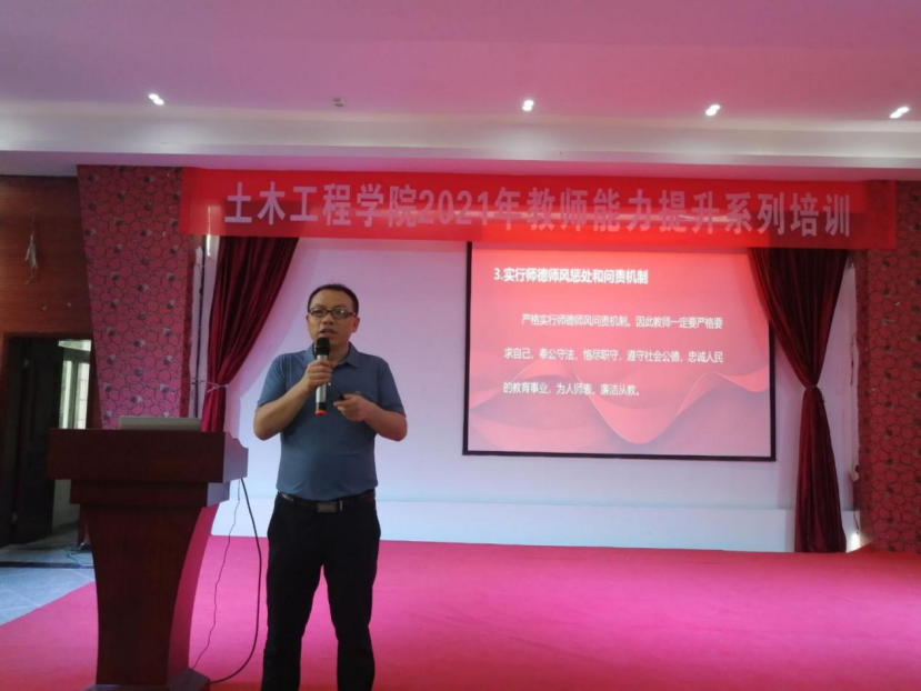 本网讯(文/图 土木工程学院文化宣传部 李明虹)为深入贯彻党的十九大精神,全面加强教师队伍师德师风建设,同时响应学校“树师德、正师风,争做‘四有’好老师”的号召。2021年6月9日14时,土木工程学院(下称“学院”)在三楼多功能厅开展了2021年教师能力提升计划的第四次培训暨“师德师风大讨论”主题研讨活动。由办公室主任毛云莹主持,在南泉的全体教职工参加了活动。