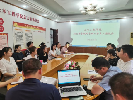 本网讯(文/图 毛云莹)2021年7月9日上午9点,土木工程学院在212会议室召开了2021年春秋两季新入职员工座谈会。会议由雷江院长主持,全体院级领导及2021年春秋季新入职的27名新员工参加了座谈。