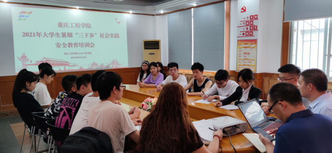 下午3点许,2021年大学生暑期“三下乡”社会实践安全教育培训会顺利结束。土木工程学院院长雷江、党总支书记唐和平、分团委书记刘琳靖、“三下乡”全体成员参与会议。