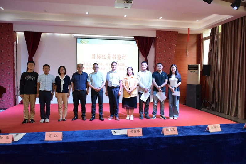 雷江院长、唐和平书记与3名系主任及4名教师代表现场签订了2021-2022学年目标任务书。