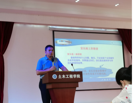 本网讯(文/江娅琳 图/安小娴)为提高寝室长工作能力,打造优良的寝室文化,营造舒适、安全的寝室氛围,建筑工程学院于2021年9月15日13:00在学院三楼多共功能厅召开“寝室长工作会”。会议由学院党总支书记唐和平主持。