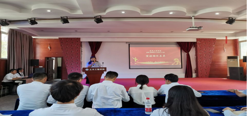 激昂的共青团团歌拉开了大会的序幕,学院团委书记刘琳靖老师宣读了录用名单。19级的杨蕾同学谈了自己在学生会工作以来的收获和体会,20级吴思骏同学代表新成员表了决心。唐和平书记要求新成员要明确自己加入学生会的初衷和最终自己要达成的目标,并对团学工作提出三点要求:一是要求全体团学干部积极起到领导作用,以身作则;二是要求团委学生会树立全心全意为同学们服务的责任心;三是要求团委干部合理用权,摆正好自己的位置,要用手中的“权”去服务同学、帮助同学。
